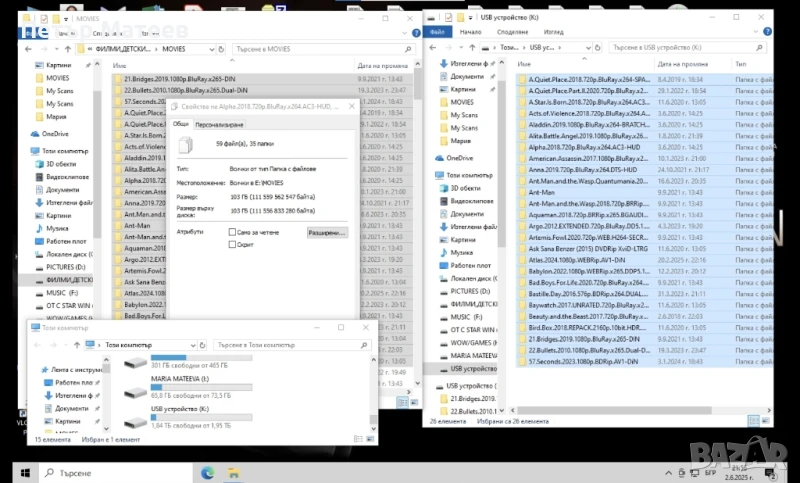 Послебната снимка е как съм напълнилнил карта със 103ГБ,защото имаше и такова желание от клиент. ;)