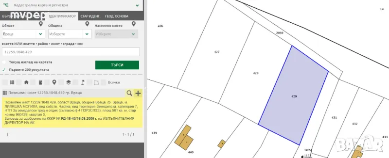 Продавам парцел в местността Лиляшка Могила на 430 м от главн път Враца-Криводол , подходящ за пчелин, фотоволтаична система и др.
