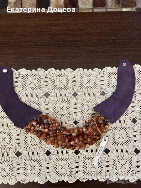 Дизайнерско колие с велурена каишка → Обява 47474629
