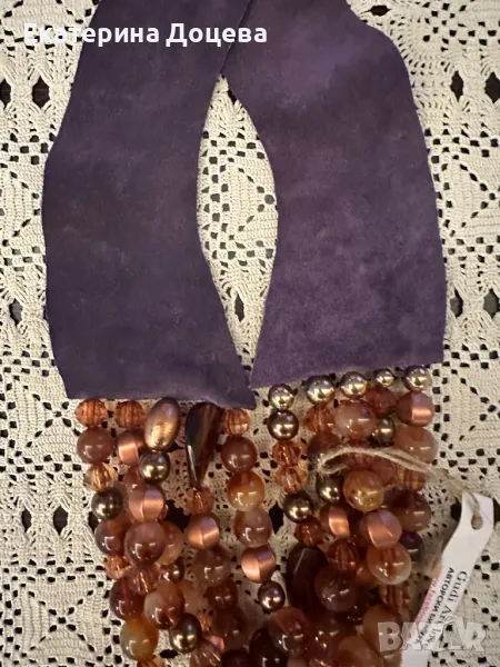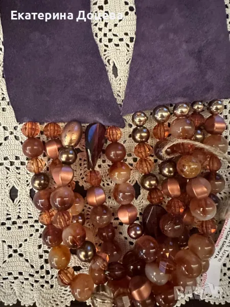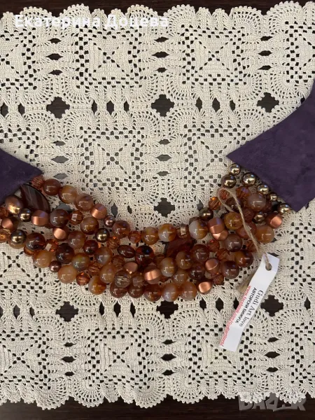 Колие в лилаво и бежово-кафяво, закопчаване с тик так копче. Красиво и елегантно.
