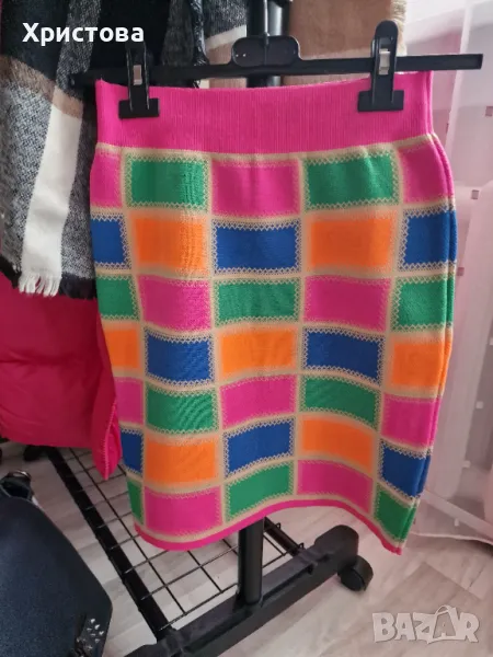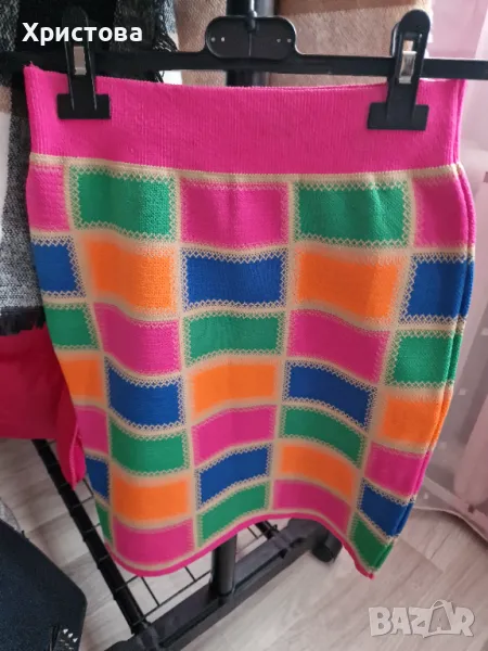 Нова с етикет къса пола с висока талия, размер универсален. Машинно плетиво. Символични цени на всички дрешки в профила ми. Опция тест и преглед. Доставка с оттъпка до офис ЕКОНТ. 0899243418