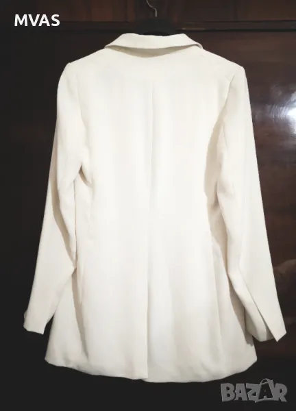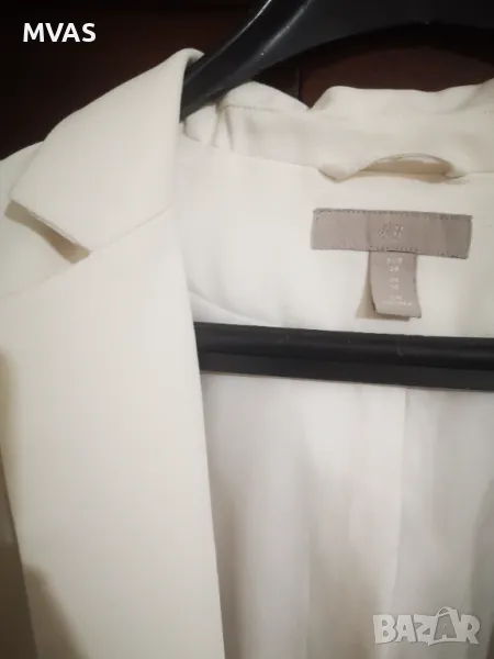 Млечно бяло, екрю, H&M. Без закопчаване, с ревер, цепка отзад. Скрити джобчета отстрани.