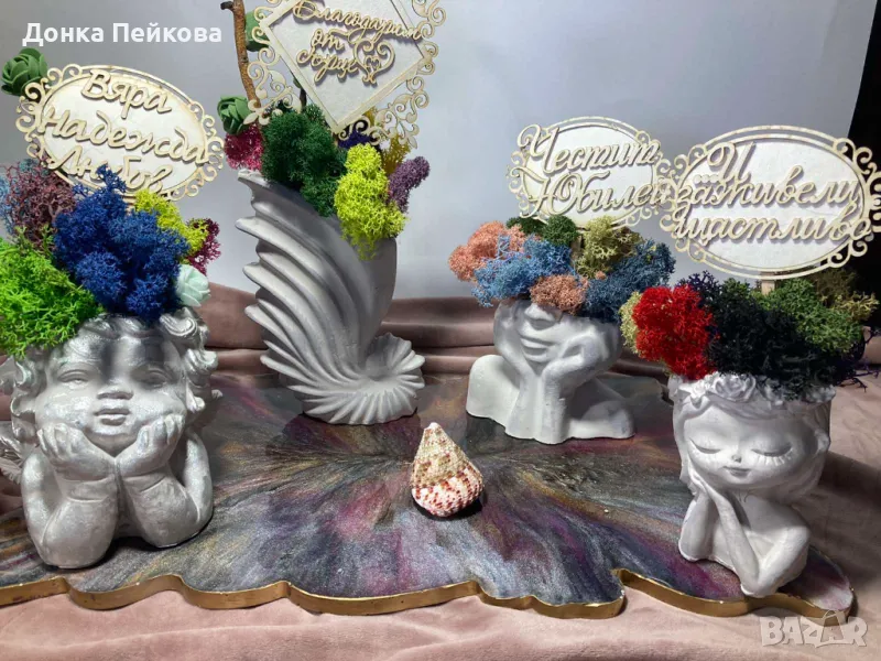 Различни модели кашпи със естествен скандинавски мъх и пожелания → Обява 47476759