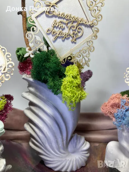 Различни модели кашпи със естествен скандинавски мъх и пожелания