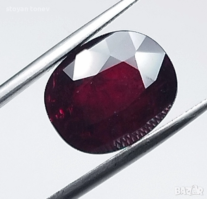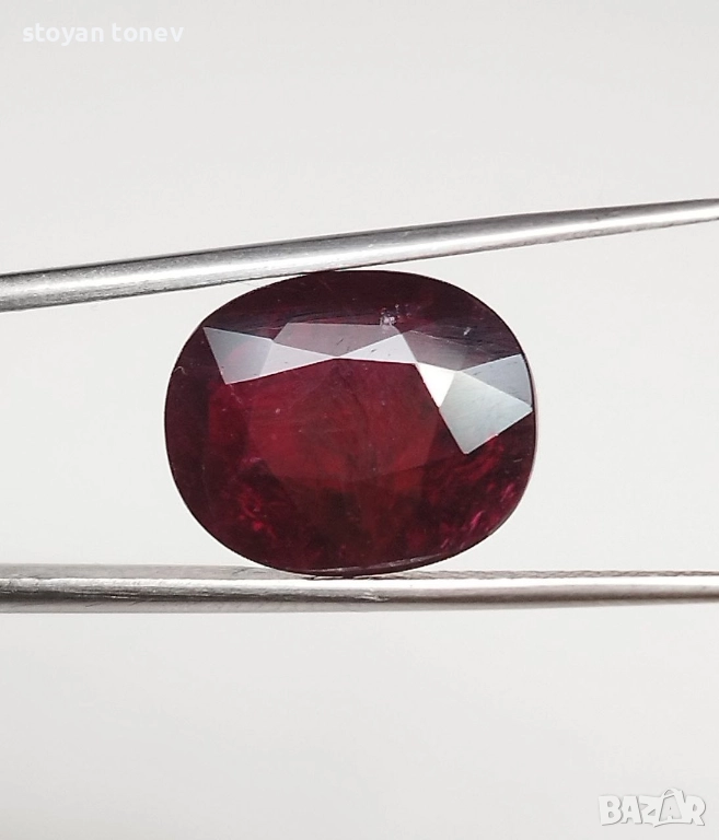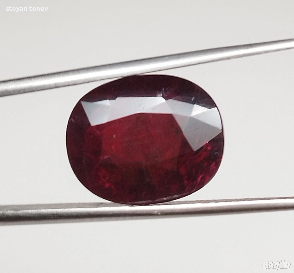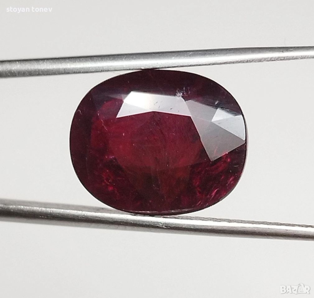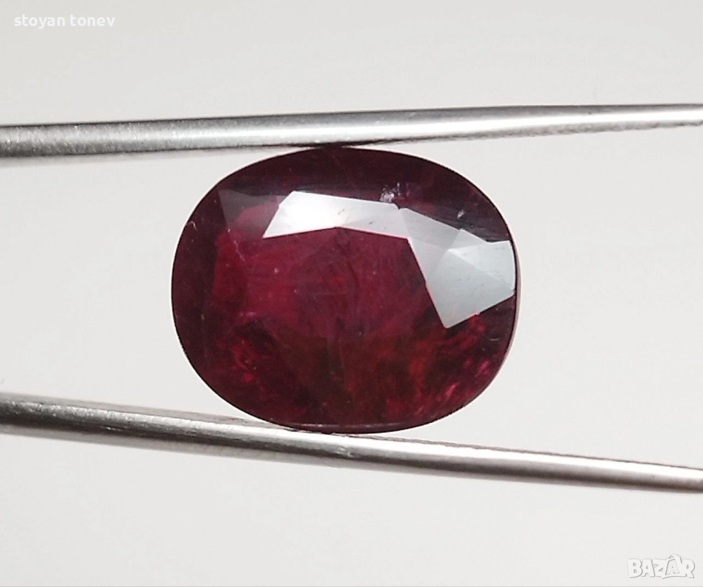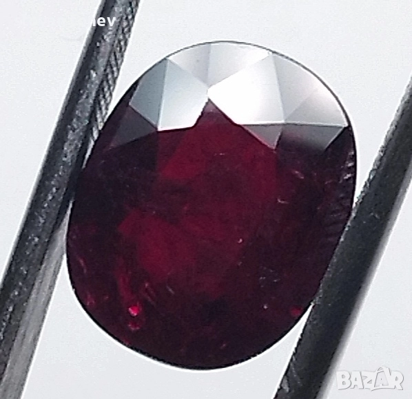 рубин с тегло 5.24кт. и произход Мадагаскар. Прозрачен с включения видими с невъоръжено око. Винено червен на цвят. Овална форма с размери: 12 x 9.7 x 4.7 mm.