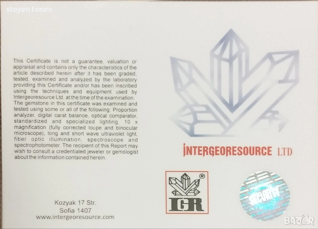 Класически нагряван. Сертифициран от Интергео Ресусрс.