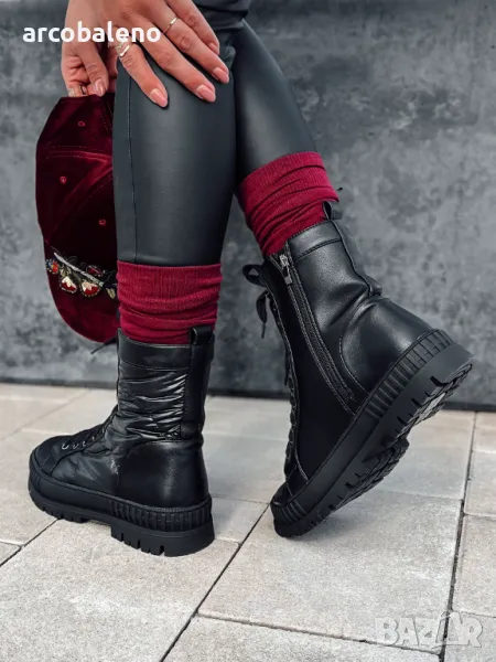 Високите ботуши с масивна подметка са идеалният избор за есенно-зимния сезон. Уникалният дизайн съчетава удобство и функционалност. Благодарение на издръжливите материали, тези обувки осигуряват защита срещу неблагоприятни метеорологични условия, като същевременно добавят стил към всяко облекло. Перфектни за ежедневните разходки в града, гарантират комфорт и модерна визия.