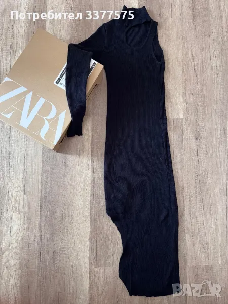 Черна рокля Zara един ръкав дълъг без цепка изразана → Обява 47480863