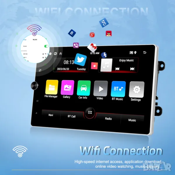 Универсална мултимедия с новият Андроид и голям 9 инчов екран.