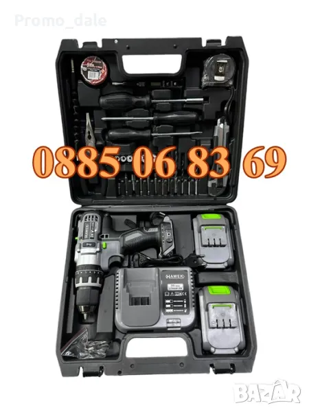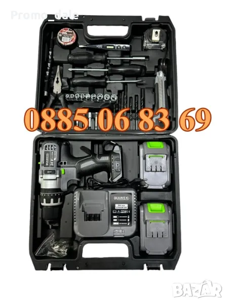 Акумулаторен ударен винтоверт с части HAWEK , 24V 4.0A е професионален инструмент за завинтване на винтове, но е често предпочитан и сред любители на ремонтните дейности в домашни условия. Лек, удобен и компактен, позволява работа с една ръка продължително време. Оборудван е с ергономична противохлъзгаща се ръкохватка, която намалява риска от изплъзване при експлоатация. Снабден е с функция за ударно пробиване, функция за превключване на въртенето ляво/дясно и бързо затягащ се безключов патронник. Захранва се от 24V 4.0A литиево-йонни батерии, които се зареждат изключително бързо. С цел разработване на батериите е необходимо първите два пъти да бъдат заредени по минимум 6 часа всяка !!! Винтовертът се предлага в удобен куфар в комплект с инструменти от първа необходимост.