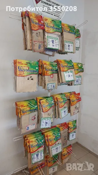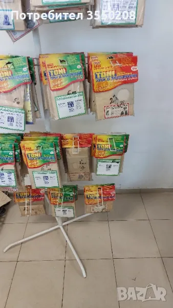 Цена на стелажа 30 евро + 50 броя комплект торбички на фирмата Тони, останали от развален магазин тези от снимката.