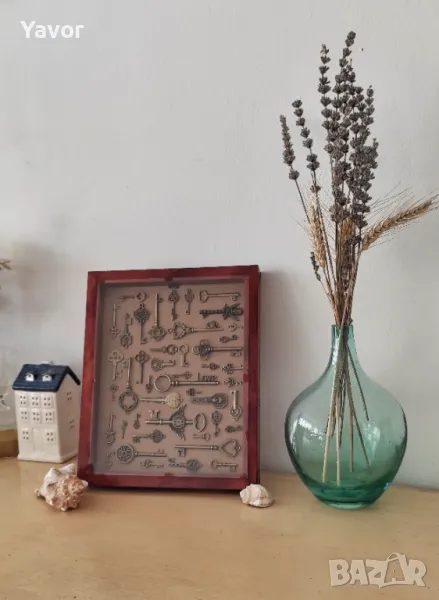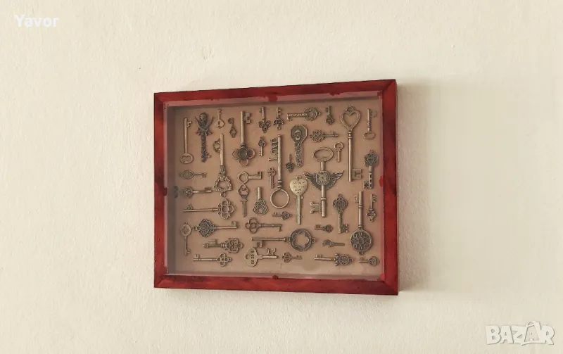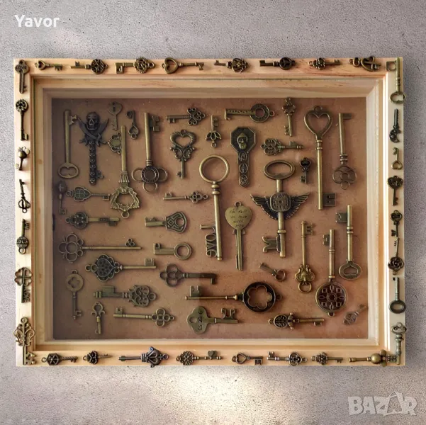Ключовете са бронзови, рамката е естествено дърво със стъкло