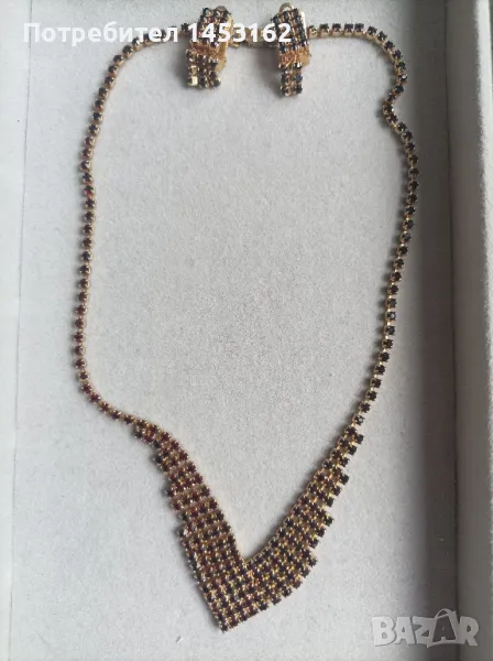 Чешко старинно колие и обеци с гранатови кристали → Обява 47483001