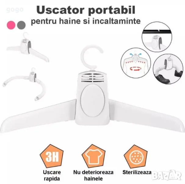 Закачалка с функция за изсушаване, За дрехи и обувки, С горещ въздух, Бял → Обява 47483047