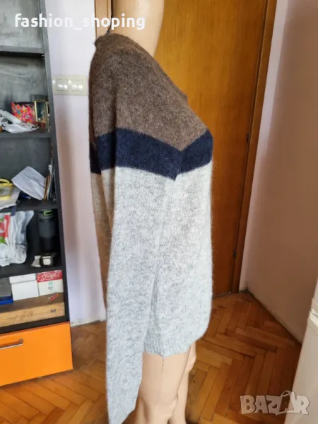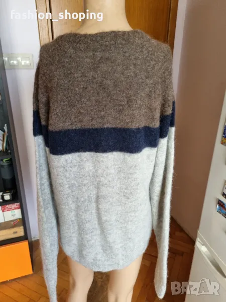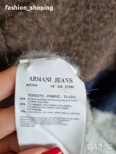 Този пуловер е за господата, които държат на комфорта и качеството. Плетивото е на разпознаваем бранд Armani, а съставът му в голямата си част е от една от най- качествените материи за студените месеци- алпака. Именно алпаката му придава неяроятното меко и пухкакво усещане и е отличен изолатор на студа. Koмбинацията на алпаката с вълна допълва топлината, която носи този пуловер.