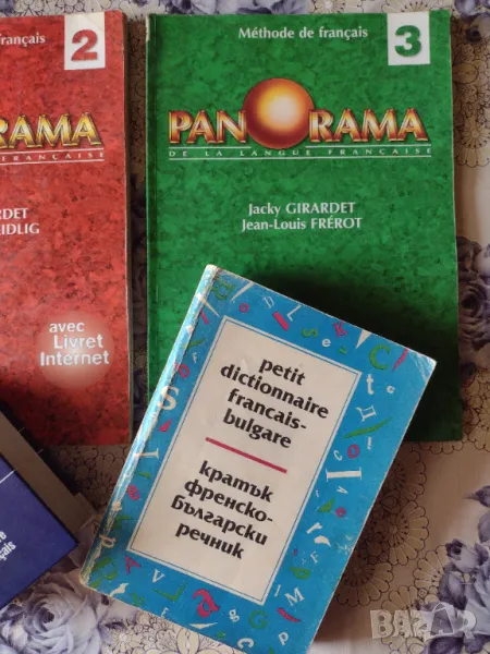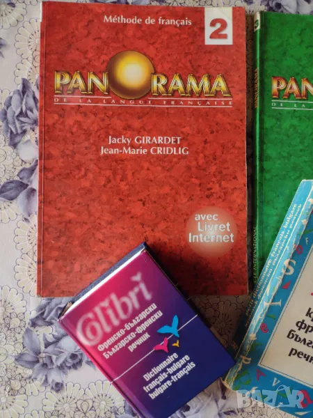Учебници по френски език Panorama 2 & 3 и два речника.