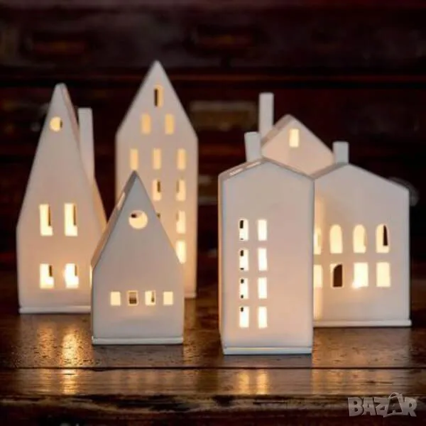 Свещник бяла порцеланова къщичка за уют и приятна атмосфера