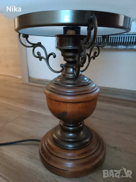 Изключителна находка. Тази нощна лампа е уникално красива и запазена перфектно. Дърво, метал и стъкло, съчетани красиво в този ретро полъх от миналото. Тежка е, работи и има ключ за включване и изключване.