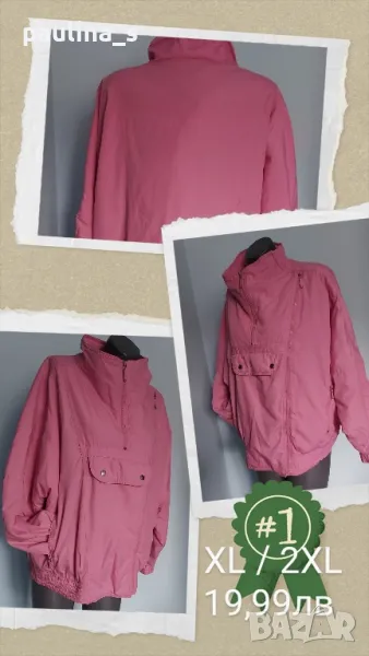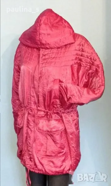 2. Колаж / L / 2XL - Сатенирана топла парка в екзотично сигнално розово - Цикламѝно - цена 24,99лв. Качулката се сваля. Без дефекти. Купувана е 1985г от "Валентина", във вид видим от снимките.