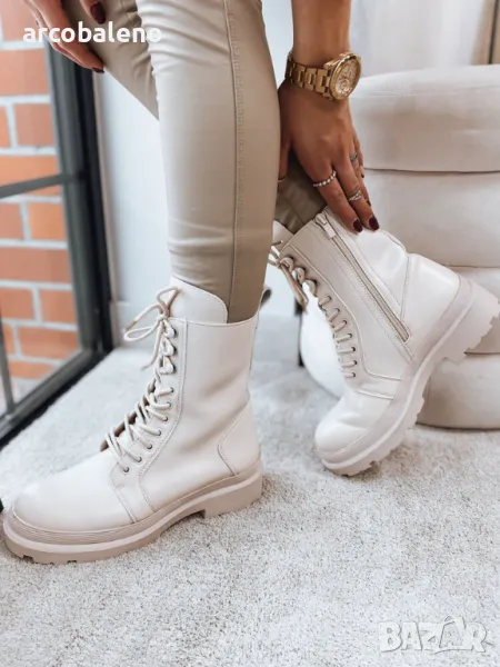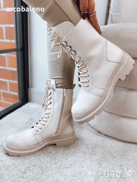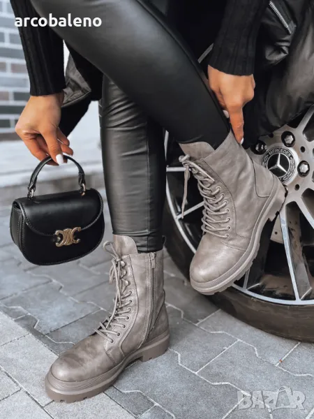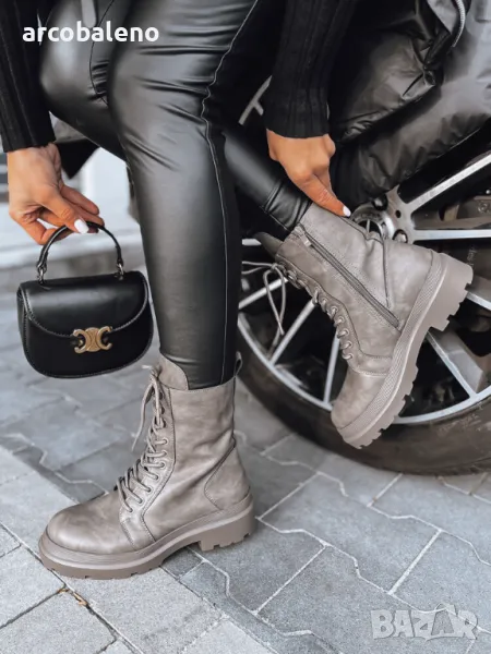 Ботите с връзки от висококачествена имитация на кожа са перфектното предложение за този сезон! Поставят се на дебела подметка. Моделът не е изолиран. Перфектен за есенно-зимен стил.