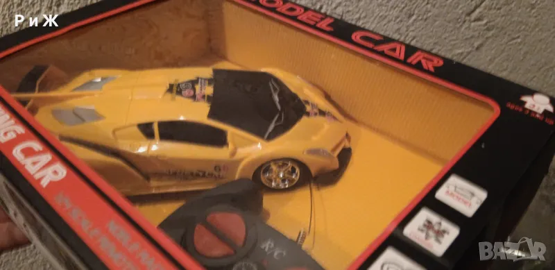 Жълта спортна кола с дистанционно управление. Последна бройка. Играчката работи с батерии.