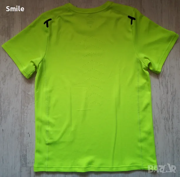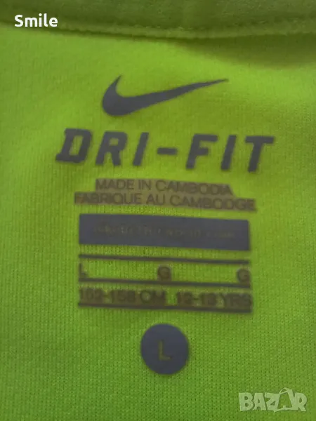 Спортна фланелка Nike, оригинал. В отлично състояние, леки забележки на гърба /снимано е/. В действителност не правят впечатление. Актуален цвят. Лека, дишаща материя Размер LG, ръст 152-158 см.. Размери, измерени от мен: ширина - 47 см., дължина - 64 см. Изпращам с "Еконт" или със "Спиди".
