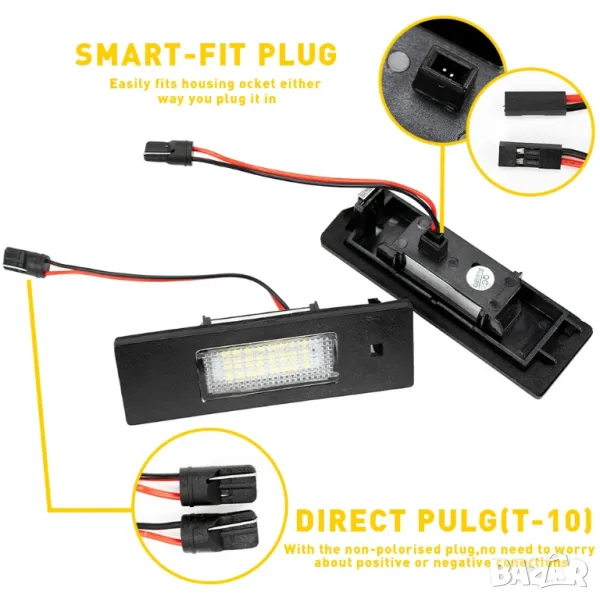 Плафоните са с високо качество на изработка – изпълнени са с ярко светещи canbus smd диоди, които не дават индикация за несветеща лампа на борд компютъра на автомобила.