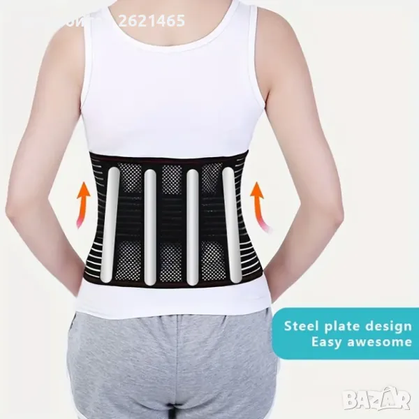 - Четири пластични метални банела в задната част на колана поддържат гръбначния стълб в оптимална изправена позиция за да се намали напрежението в междупрешленните дискове. Прилепват плътно по кръста и осигуряват стабилност на лумбалната част на гръбначния стълб като подпомагат мускулатурата в областта.