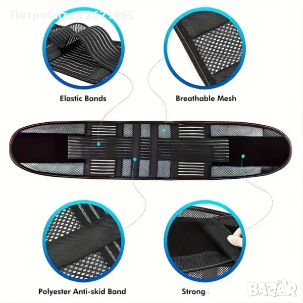 - Допълнителните ластични ленти повишават стабилността на кръста и позволяват да регулирате пристягането според индивидуалните ви нужди.