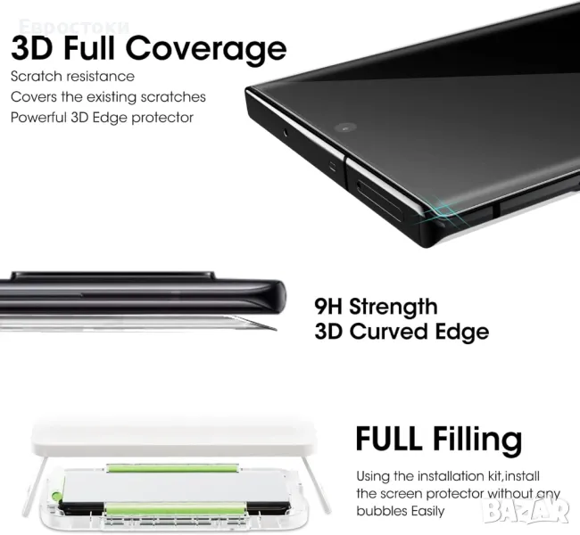 3D стъкло с извити ръбове и пълна съвместимост с чувствителността на докосване: Този протектор покрива извитите ръбове на S22 Ultra и гарантира устойчивост на надраскване на S22, ултра ясна прозрачност с висока разделителна способност, защита от падане и пълна съвместимост на чувствителността на сензорния екран.
