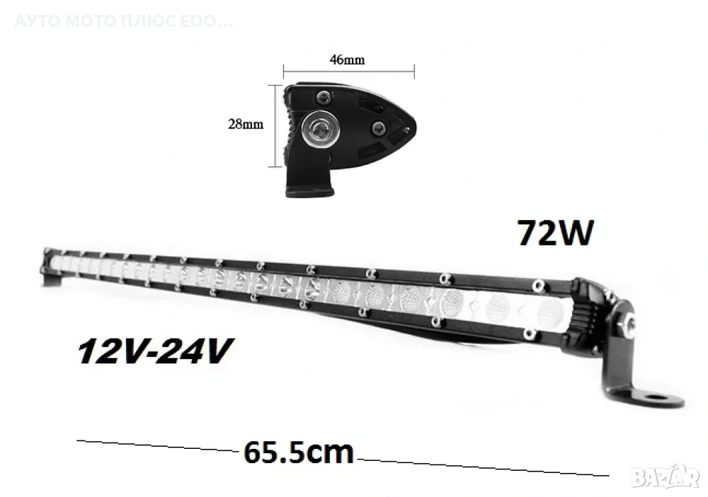 Едноредов SLIM LED бар (диоден халоген) с мощност 72W, оборудван с 24 висококачествени светодиода.