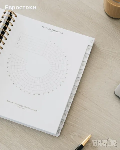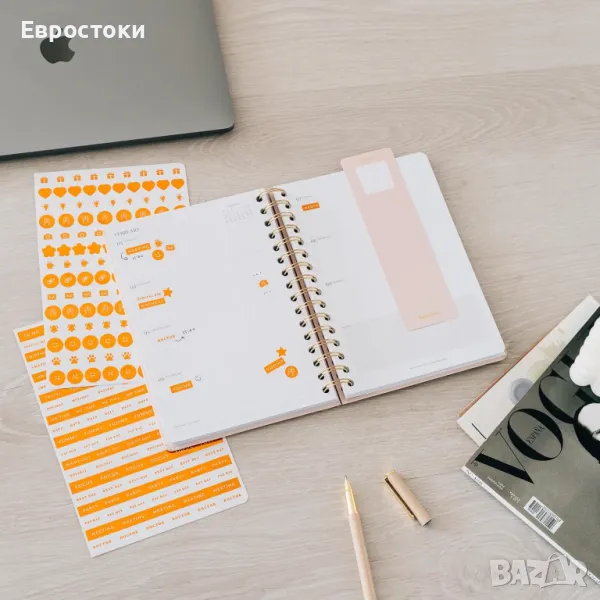 Академичен планер с минималистичен стил в бежови тонове, идеален за организиране на ежедневието ви с визуално планиране във формат за седмичен изглед. Неговият изключителен дизайн добавя нотка на елегантност и хармония към вашето работно пространство, което го прави идеалното допълнение към вашата седмична организация.