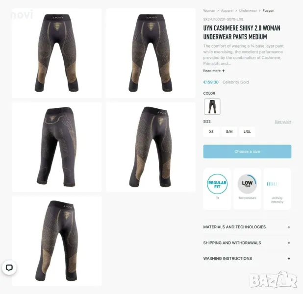 UYN Cashmere Shiny, ново, оригинално термобельо, ски/сноуборд с кашмир