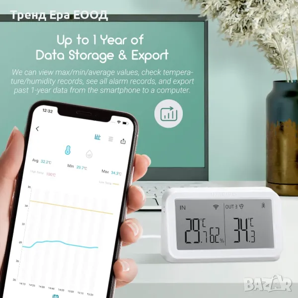 С WIFI шлюза IBS-M2 можем да контролираме всички свързани термометри и да наблюдаваме работата им от нашия смартфон по всяко време и навсякъде. Чрез приложението INKBIRD можем да видим всички температури на 9 различни места, макс./мин./средно за всеки термометър и история за една година.