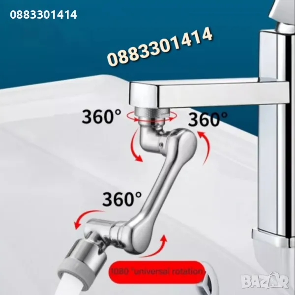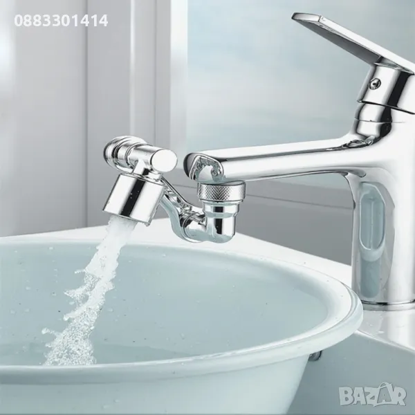 Нашата въртяща се на 1080°, сгъваема приставка за кран е подходяща за използване в кухненската мивка, тъй като служи за по-удобно измиване на зеленчуци, плодове, съдове или ръце и може да достигне до всички ъгли на мивката.