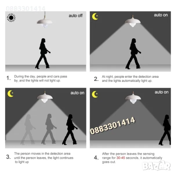 Автоматично включване/изключване, чрез сензор за движение.