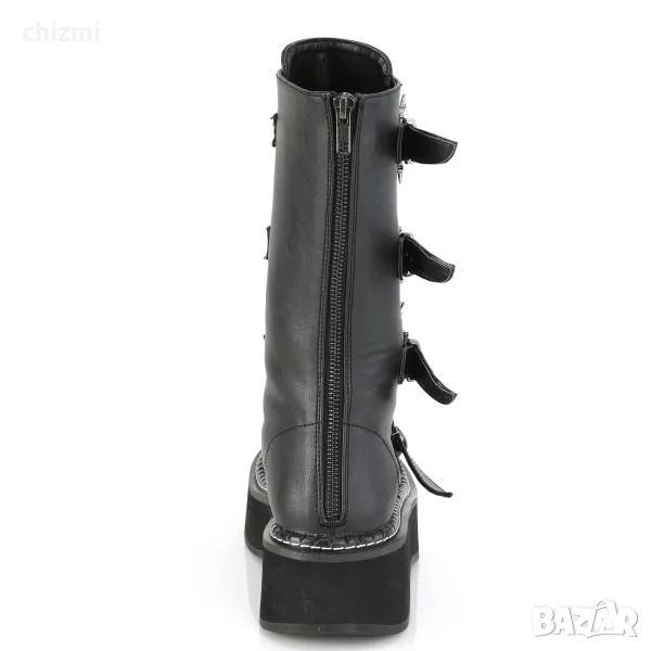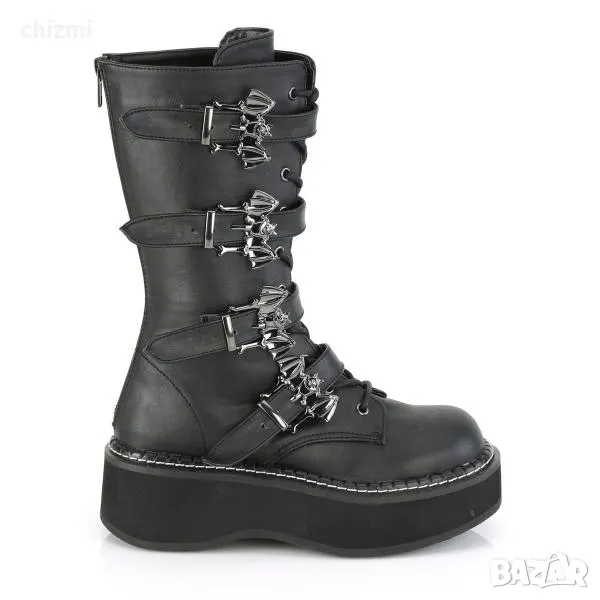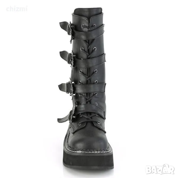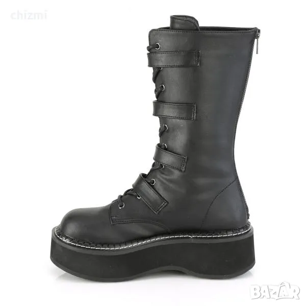 EMILY-322 Demonia вегански ботуши до средата на прасеца, ремъци с катарама, черен мат
