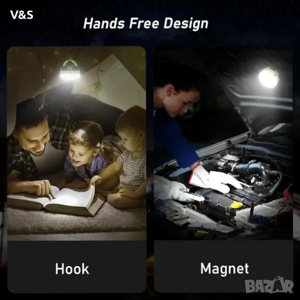 【Мощен дизайн с магнит и кука】 Благодарение на дизайна с двойно предназначение на магнити и куки, тази лампа може не само да бъде удобно окачена на палатки и клони на дървета, но също така може да бъде здраво закрепена към метални повърхности за ремонт на автомобили, оборудване за инспекции и др. .