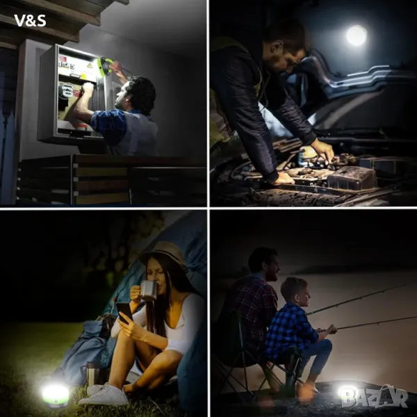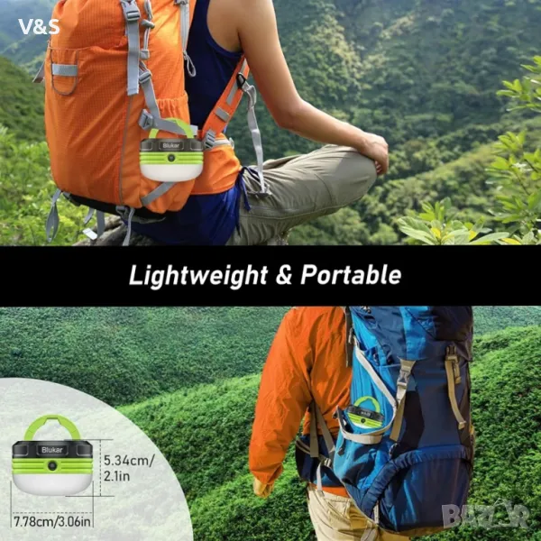 【Лек и преносим】 Малък и лек, спестяващ място. Няма товар, който да носите със себе си, когато излизате. Много е подходящо за дейности на открито като къмпинг, риболов, планинарство, туризъм и др. Може да се използва и като аварийно осветление за гаражи и мазета.