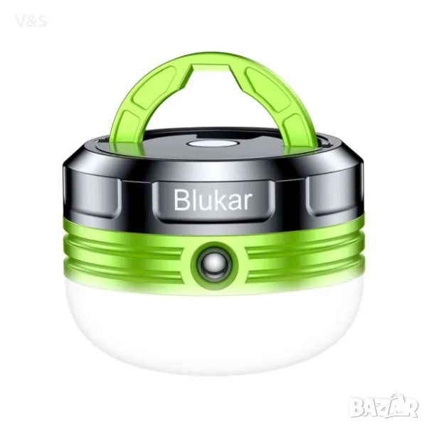 къмпинг лампа Blukar, зелена, водоустойчива, 3 режима, захранвана от батерии,включени