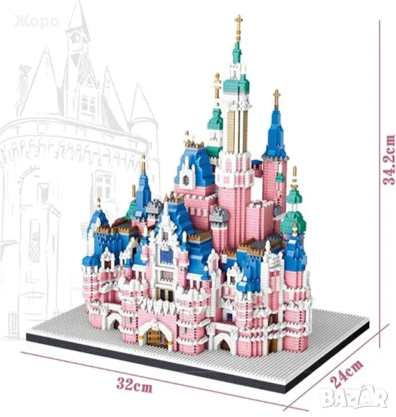 -Размер на замъка в готов вид :34,20х32х24см.