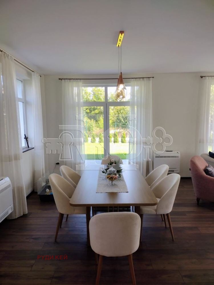 1-ви етаж: просторен дневен тракт с височина на тавана 3.0 м, френска камина с въздуховоди към втория етаж, модерна кухня и трапезария, тоалетна, теническо помещение и вътрешно стълбище;