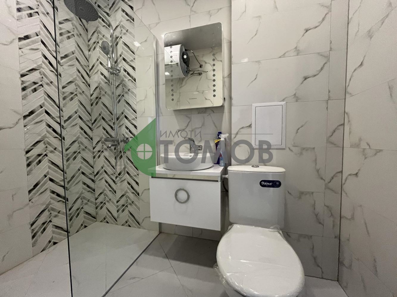 Имоти Томов представя на Вашето внимание двустаен апартамент ново строителство с обща площ от 57 кв.м. Жилището се намира на трети етаж в сграда с контролиран достъп, без асансьор.