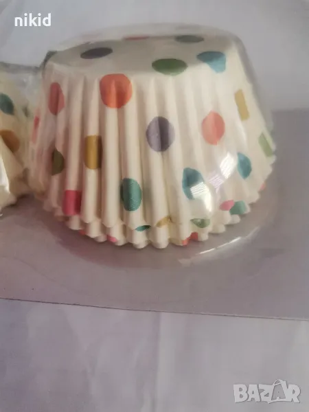50 бр хартиени капсули бели на цветни точки кошнички за кексчета мъфини парти → Обява 47495214