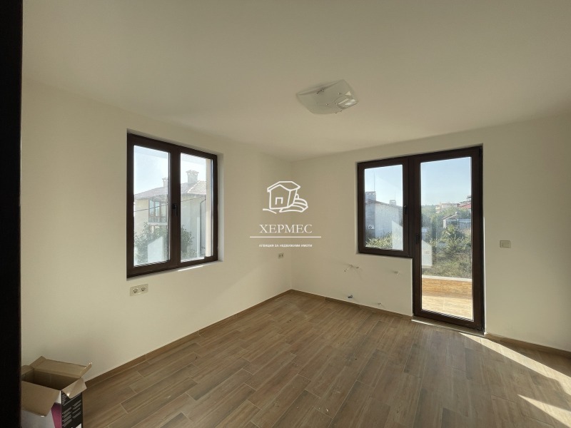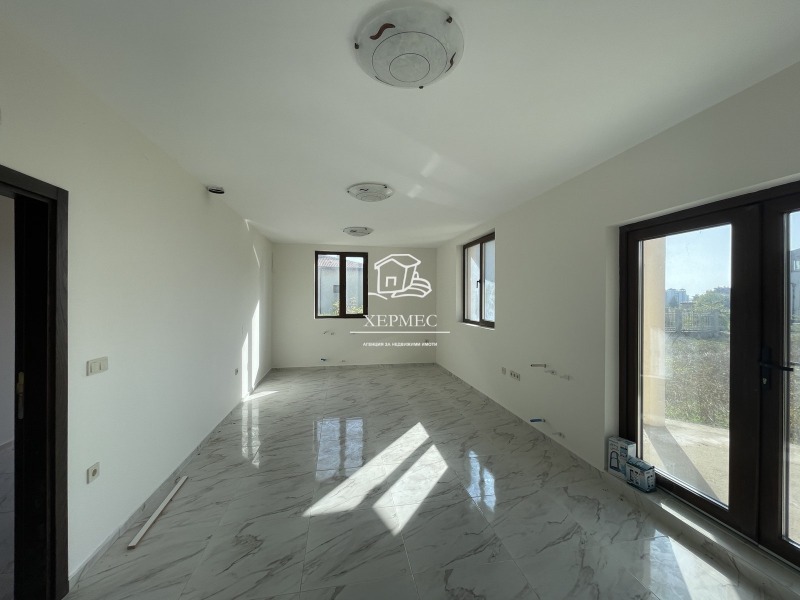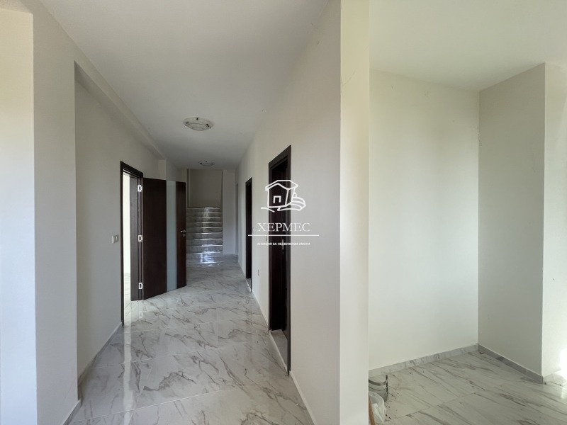 📌Къщата е завършена до ключ: ПВЦ, МДФ интериорни врати, външна изолация с минерална вата 10 см., гранитогрес, завършени санитарни помещения, поставени осветителни тела, тераси също завършени с гранитогрес, изкарани изводи за радиатори и климатици. Подовите настилки в коридорите и хола са с модерен мрамор, а в спалните - с ламинат. Всички комуникации са свързани с къщата (ток, вода, канализация). Има възможност за инсталиране на водно отопление с тръбно разпределение в помещенията за радиатори, камина и слънчеви панели. Входът в къщата може да бъде през врати от две различни страни, което дава възможност да се изолират жителите на различни етажи един от друг. Има и трета врата за изход от къщата в хола.