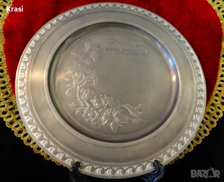 Калаена чиния за стена,пано с Честито,калаена сватба. , снимка 1 - Антикварни и старинни предмети - 47497058 Калаена чиния за стена,пано с Честито,калаена сватба. , снимка 2 - Антикварни и старинни предмети - 47497058 Калаена чиния за стена,пано с Честито,калаена сватба. , снимка 3 - Антикварни и старинни предмети - 47497058 Калаена чиния за стена,пано с Честито,калаена сватба. , снимка 4 - Антикварни и старинни предмети - 47497058 1/4