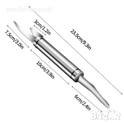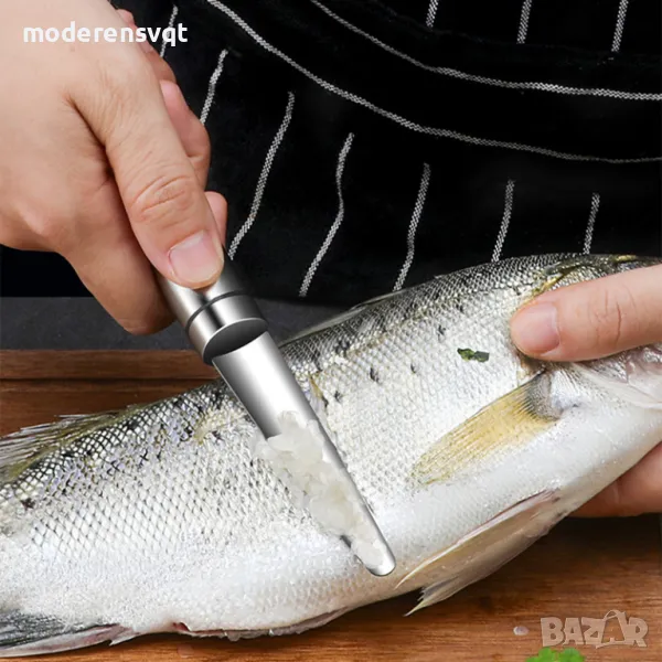 Нож за чистене на скариди, белачка на черупки и чревните нишки е многофункционален инструмент, създаден да улесни работата с морски дарове. Той разполага с два реда остриета – дълго и късо, които работят съвместно за по-голяма прецизност и ефективност. Дългото острие е идеално за премахване на глави на скариди, разделяне на риба и отстраняване на вената на скаридите. Късото острие помага за прецизното почистване на рибния корем и други детайлни задачи.