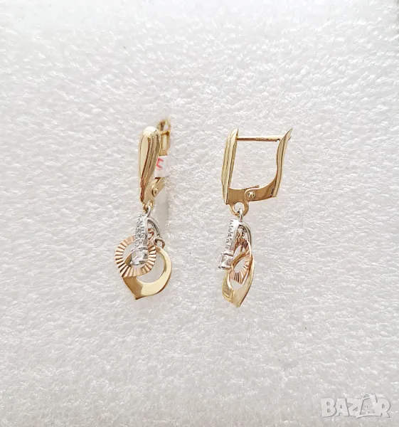 Дамски златни обеци. Злато - жълто, бяло, розово, и комбинации между тях. Сертификат и маркер проба 585. Различни модели и тегла. Цени от 190 лв и плюс. Изпращаме с Еконт с опция преглед.