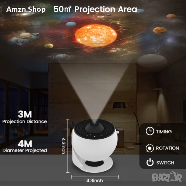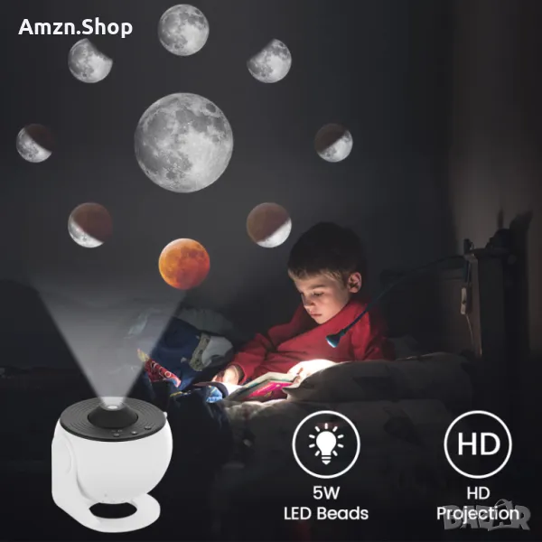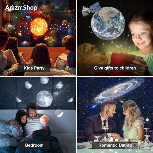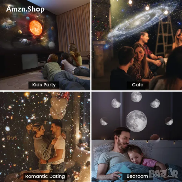 Този галактически проектор за спалнята се предлага с 12 сценария за показване: Слънчева система, Земя, Луна, Млечен път, Галактика, Галактика Андромеда, NGC4302-NGC4298, Хъбъл Deep Field, M60--UCD1, Север Мъглявина Америка, Мистична планина и Малък магеланов облак, които могат да бъдат поставени във вашата всекидневна или спалня, за да добавите усещане за технология към вашия дом.