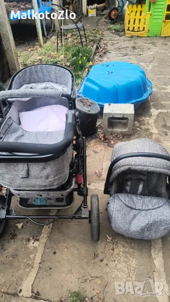 Към количката давам - Матрак,протектор за матрака,комплект от чаршаф,възглавница и одеало,комарник и дъждобран.